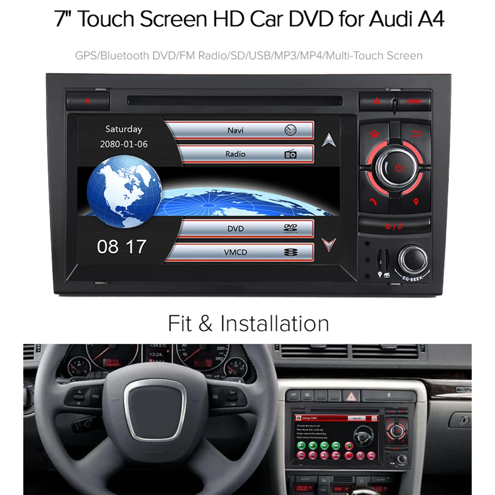 [[SPECIAL OFFERS]] A Sure 2 Din Car Multimedia Radio GPS DVD Player Navigation For Audi A4 S4 RS4 8H B6 B7 With 3G GPS SWC RDS DAB+ USB CD RNS SWC Online